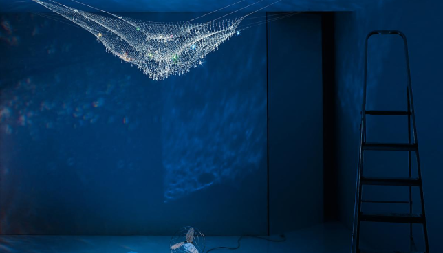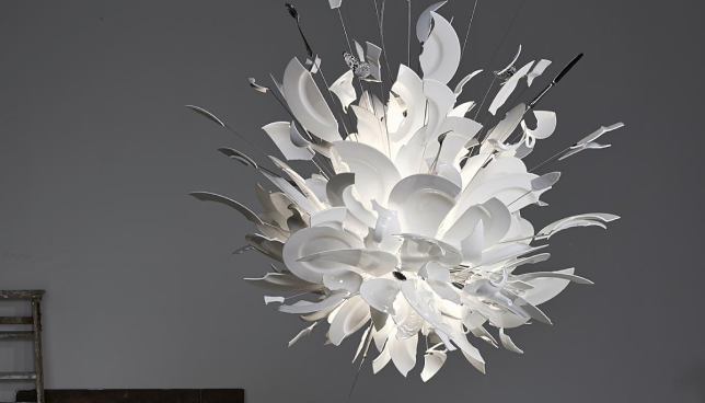 Это романтическое потолочное приспособление, выполненное из трех слоев нейлоновых сеток разного размера, усыпанных 385 кристаллами. Он дебютировал в 2009 году. Десять лет спустя эта пьеса особенно пронзительна в связи со смертью Инго Маурера. Поэзия, красота и романтика — Маурер отдал своему произведению все.